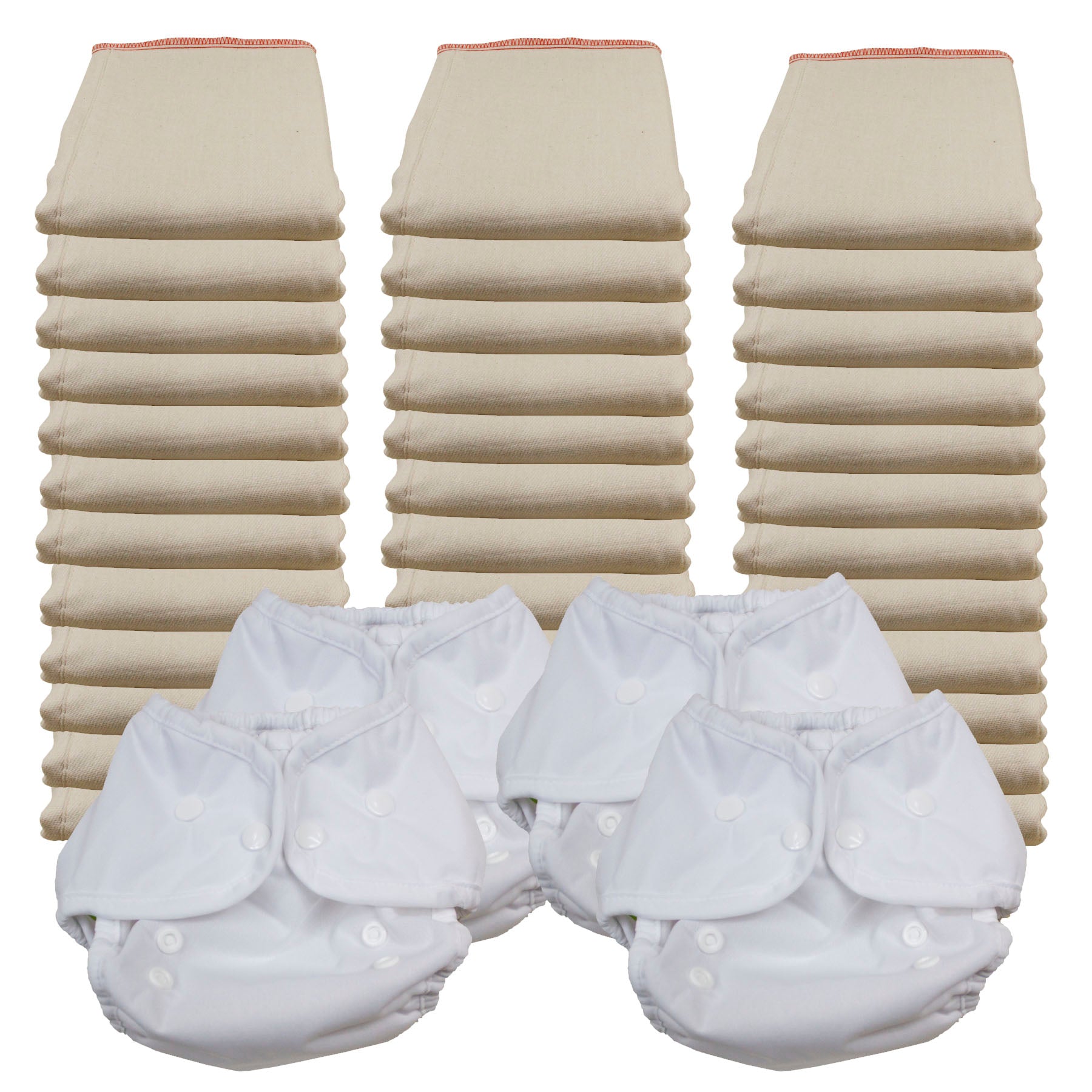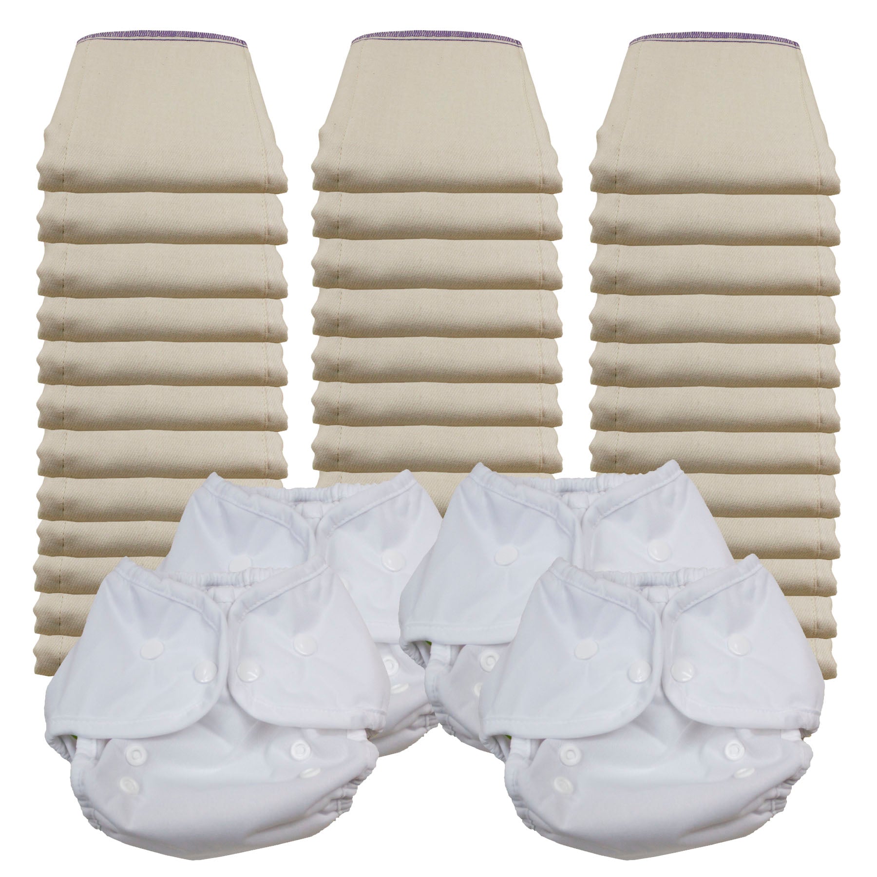 Our Economy packages are perfect for those on a tight budget. Economy prefold packages come with 3 dozen diapers, enough to last 3 or more days between launderings. You can choose between the Infant size which fits 7-15 lbs. or the Premium size which fits 15-30 lbs.