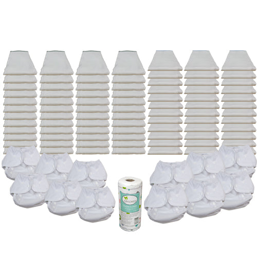 Bleached Grande Prefold Diaper Package - All The prefold diapers and diaper covers you will need thru 30 lbs! Included are enough cloth diapers so that you only need to wash every 3-5 days. We also recommend this package to parents of twins so that you can wash every 1-3 days.
