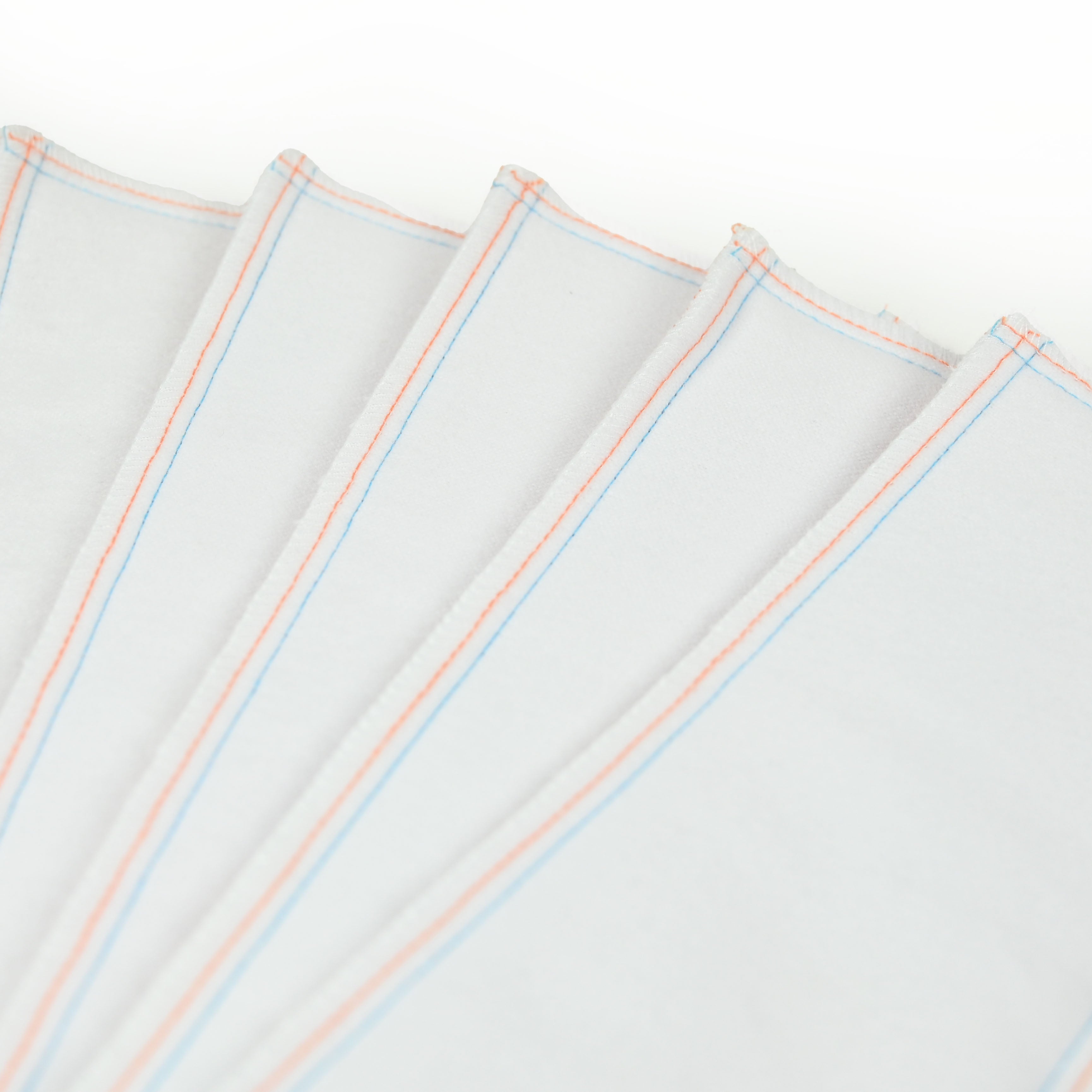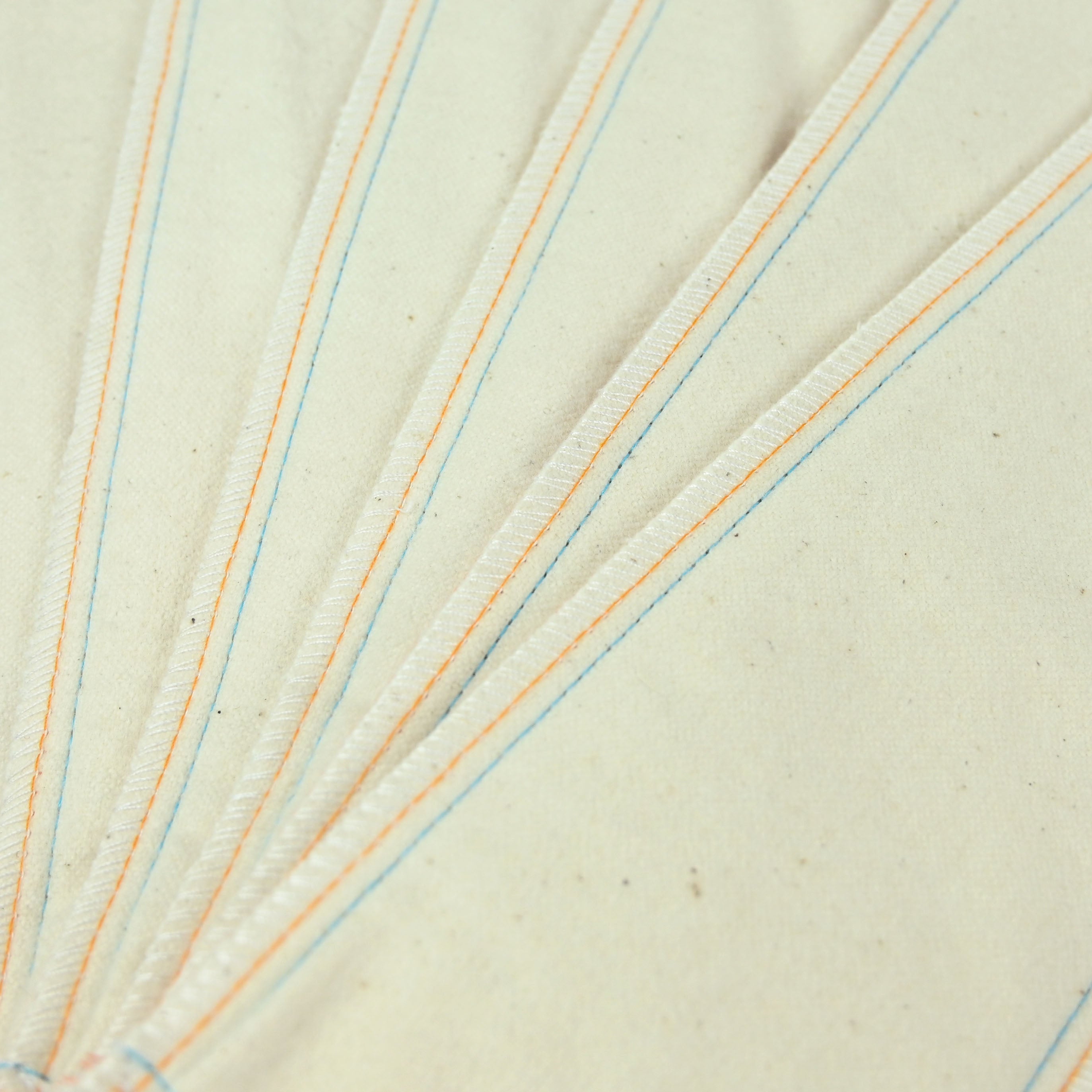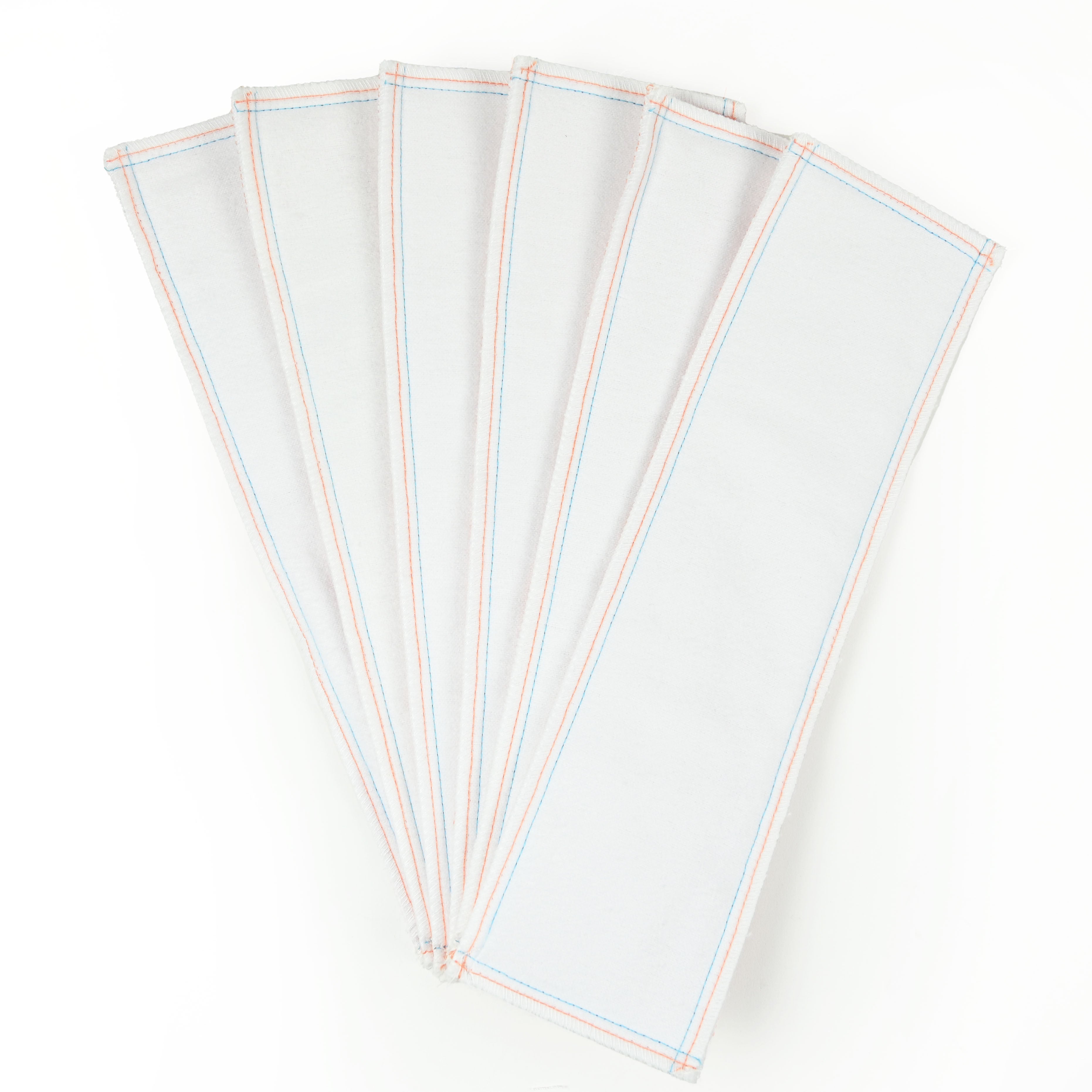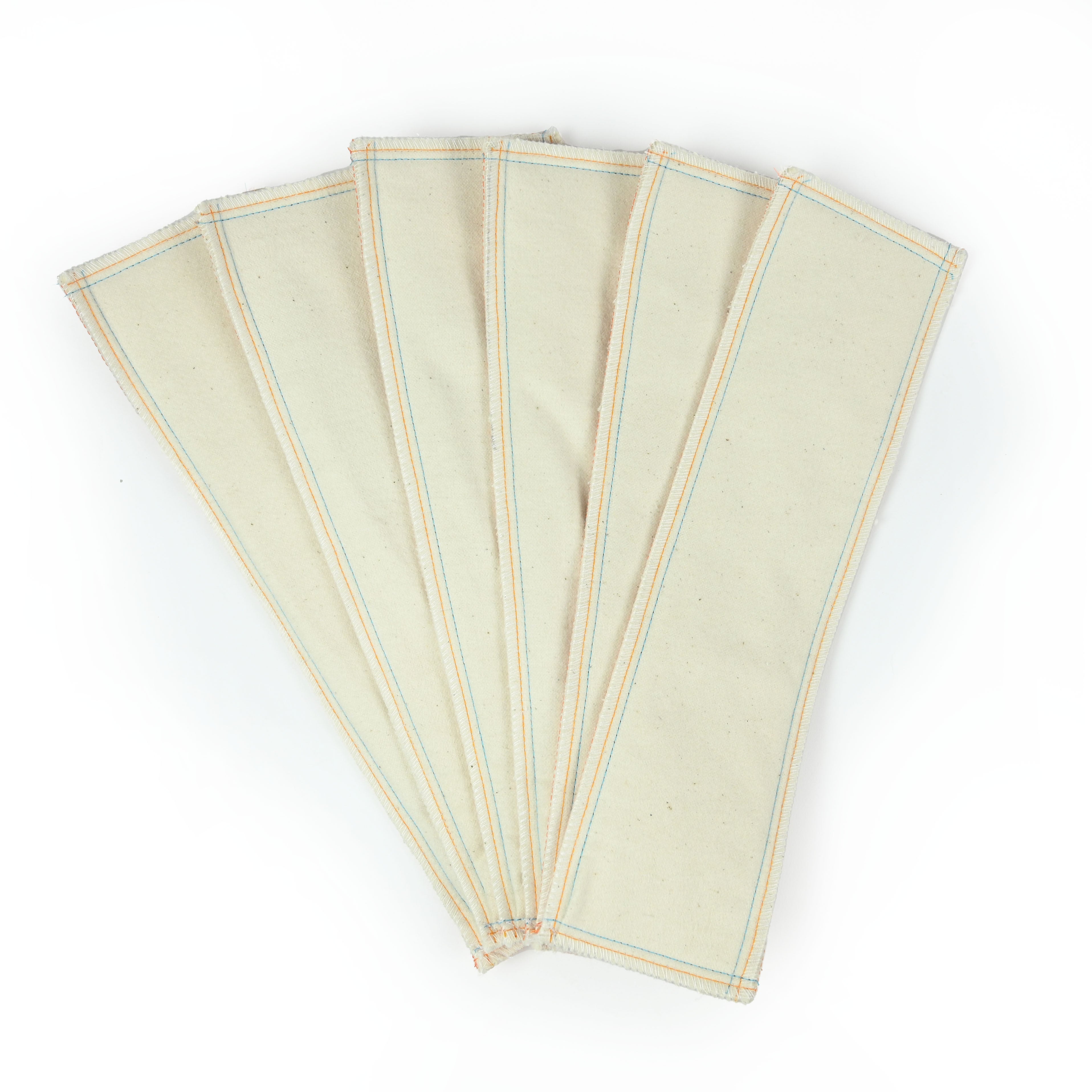 For use with any cloth diapers. A little extra absorbency when you need it most such as during nap time and at night. They are 3.5 inches wide by 11 inches long and are made of six layers of 100% cotton flannel. These are a little smaller and not quite as absorbent as our Diaper Doublers (see related items below) but they do fit in our small sized fitted and all-in-one diapers and are less expensive than the Doublers. These are now available in unbleached and bleached versions.