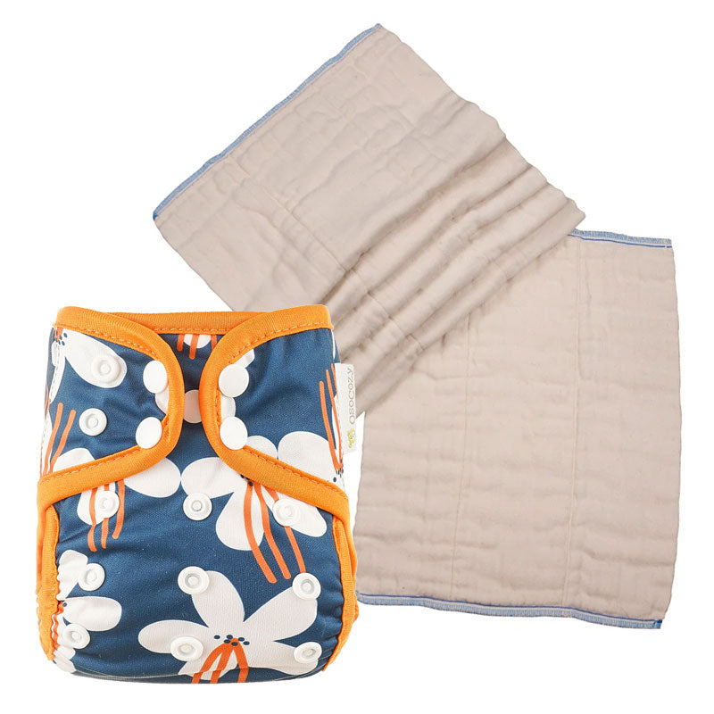 This trial package lets you try our unbleached prefolds with an OsoCozy One Size Diaper Cover. It includes 6 OsoCozy Infant 4x8x4 Unbleached Prefold Diapers with 1 OsoCozy One-Size Diaper Cover, your choice of color or pattern. This is a great way to add some extra prefold diapers to your changing station or give prefolds a first try with our money saving trial package.
