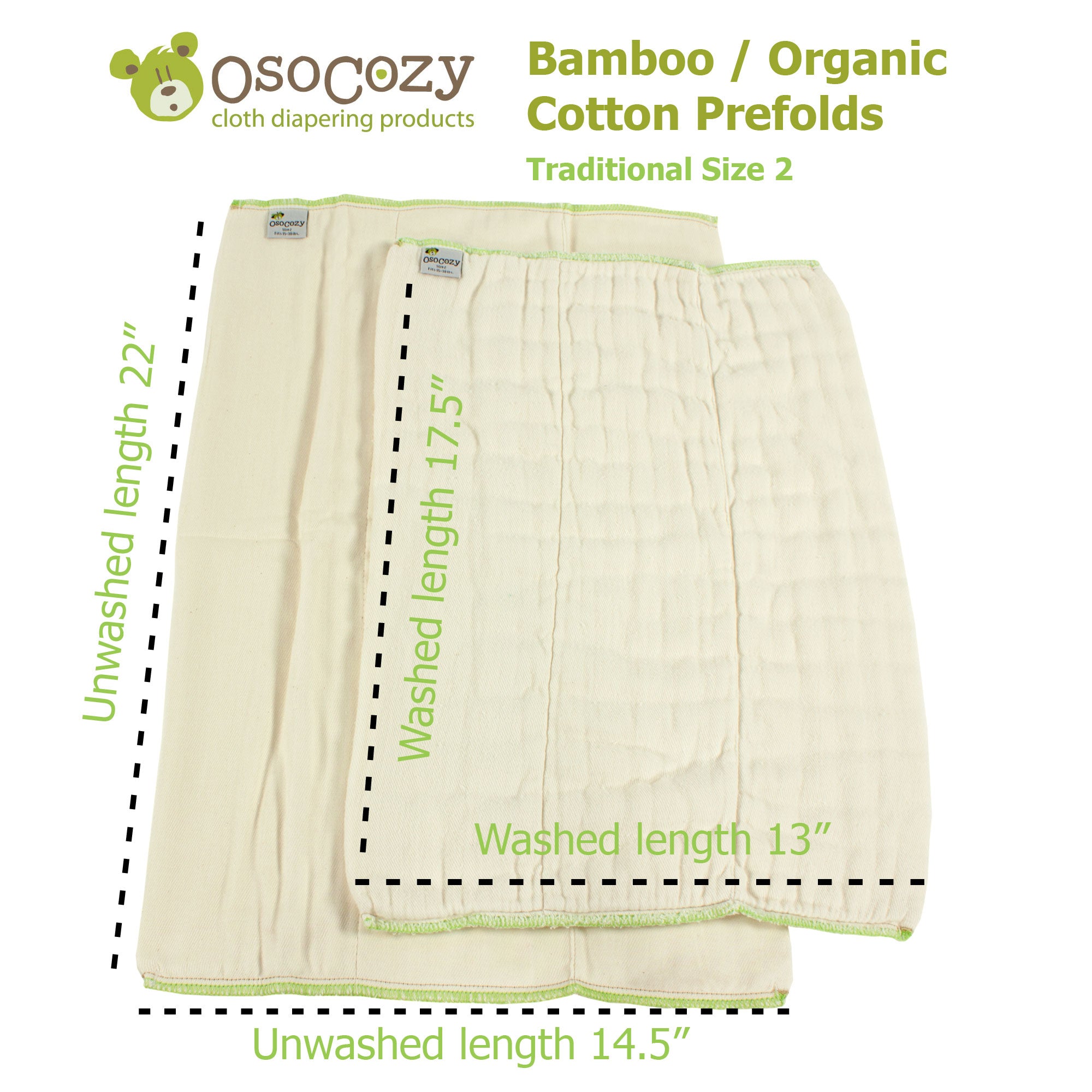 Bamboo Prefold Diapers - Osocozy prefolds that you love are now available in an ultra soft bamboo cotton blend, made from 70% rayon (made with bamboo) and 30% organic cotton, grown and harvested according to GOTS International Standards for Sustainable Textile Production. These prefolds are extremely absorbent and luxuriously soft.