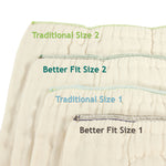 - Sizing: Traditional (long) and Better Fit. Two sizes, Infant and Premium