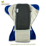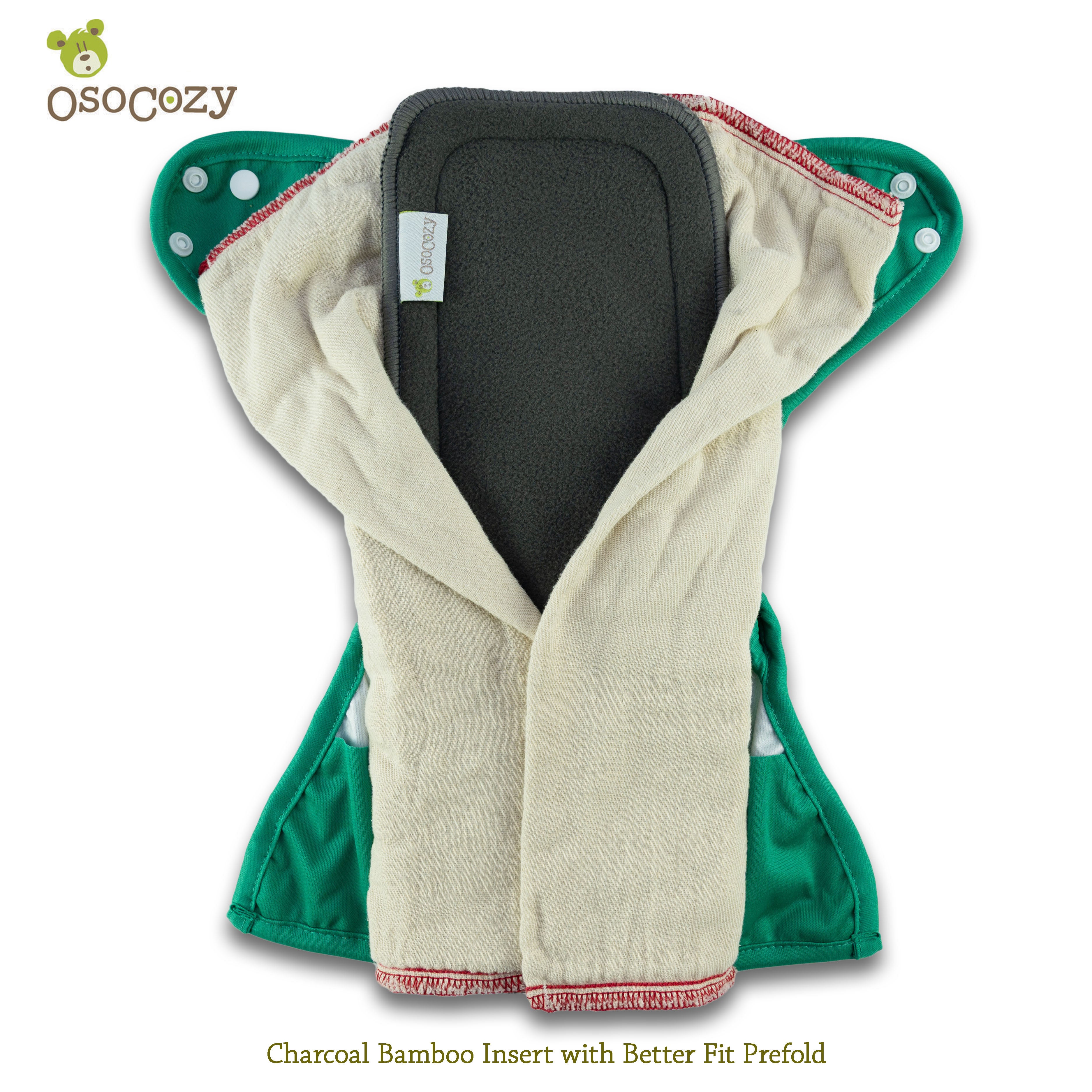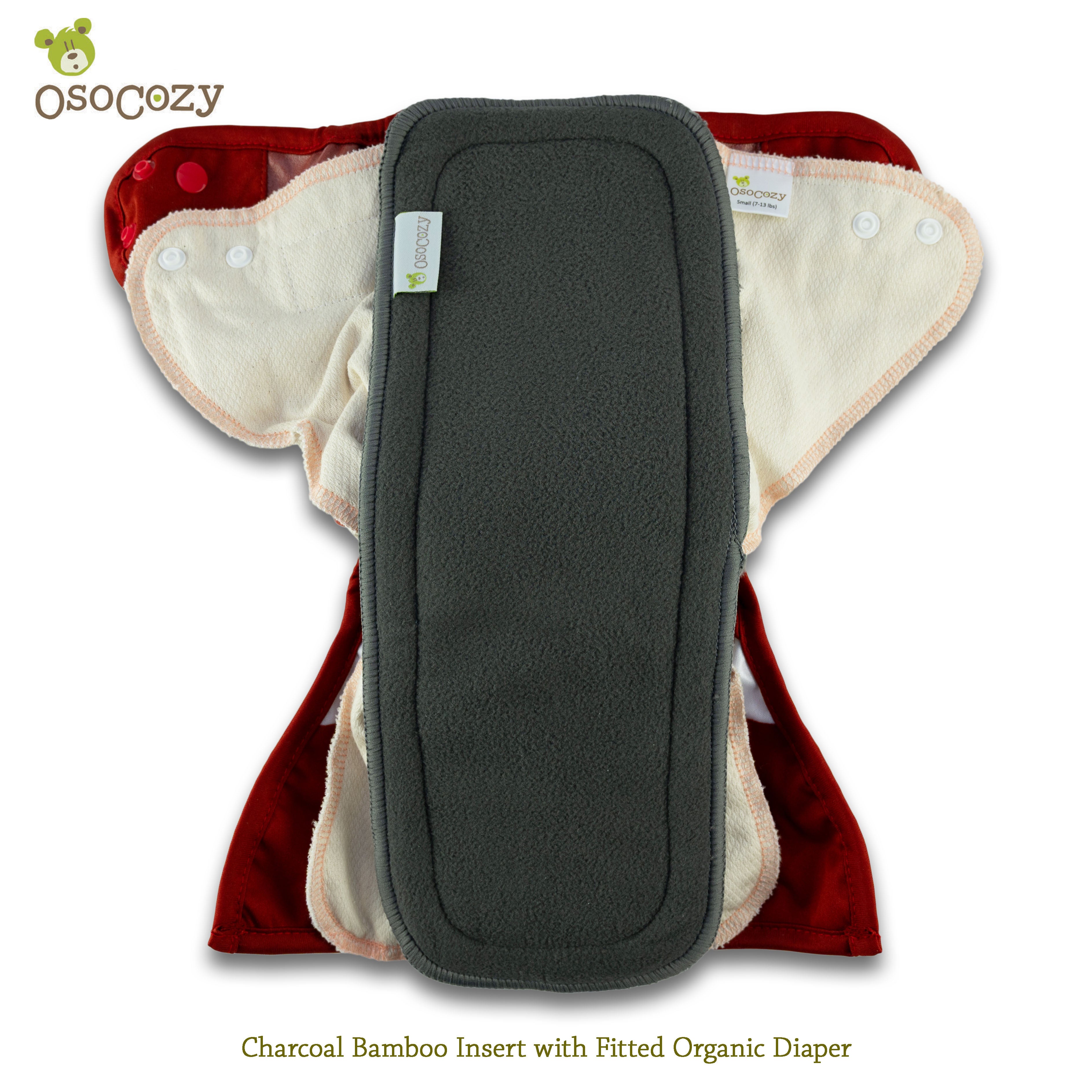 OsoCozy Charcoal Bamboo/Microfiber Inserts (12 pk) - Each insert has 5 thirsty layers. The outer layers are a Charcoal Bamboo Fleece made from 100% Bamboo fibers and the 3 inner layers are Microfiber which is 100% Polyester.