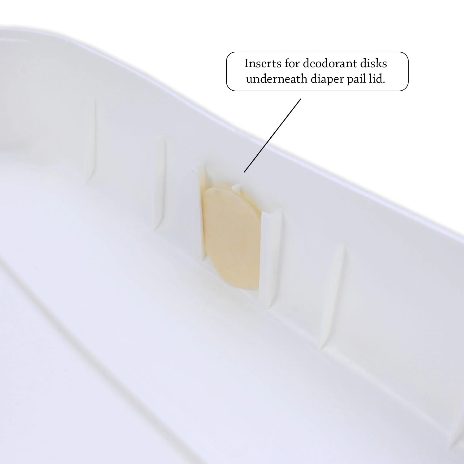 Deodorizing disks go in underneath the pail lid like so: