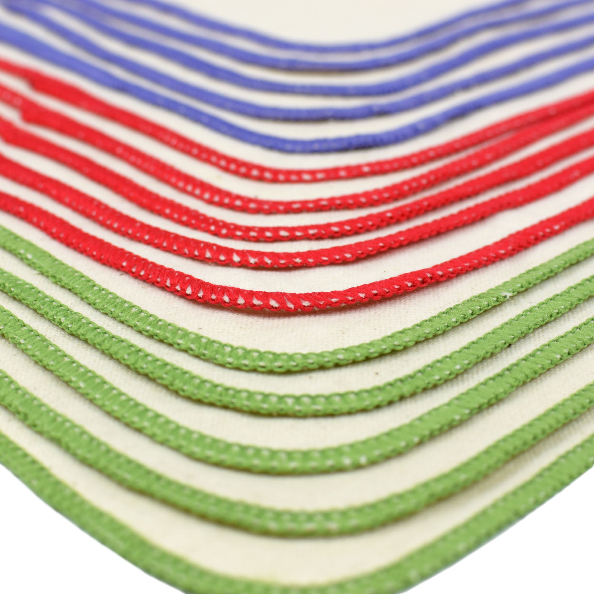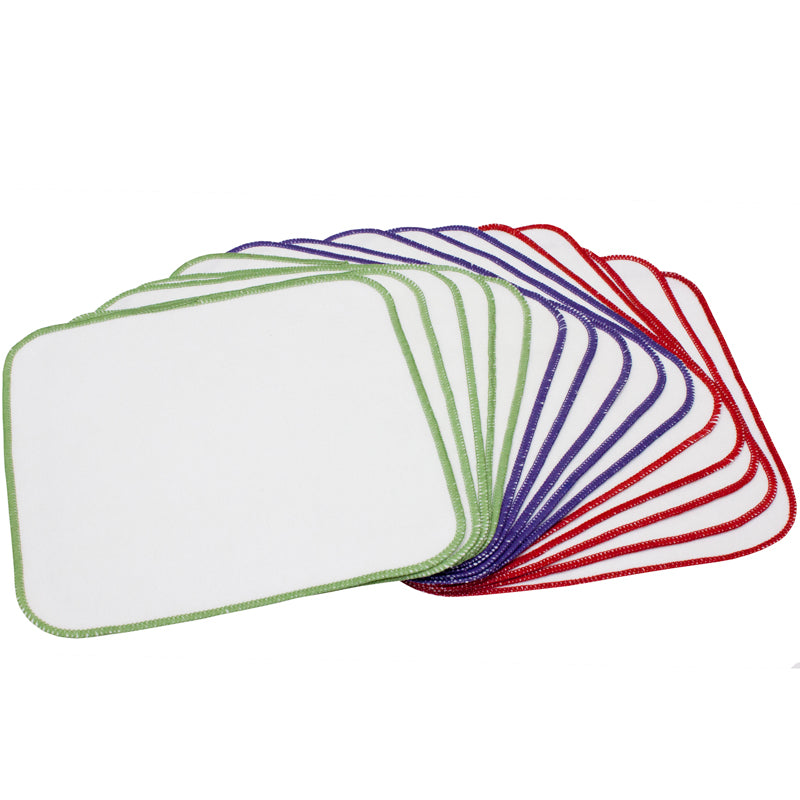 OsoCozy Flannel Baby Wipes are 100% cotton flannel for softness and absorbency. They are perfect for delicate baby skin. Each wipe is 8"x8", and there are 15 wipes per package. These wipes are surged in three colors, green, blue and red as pictured.
