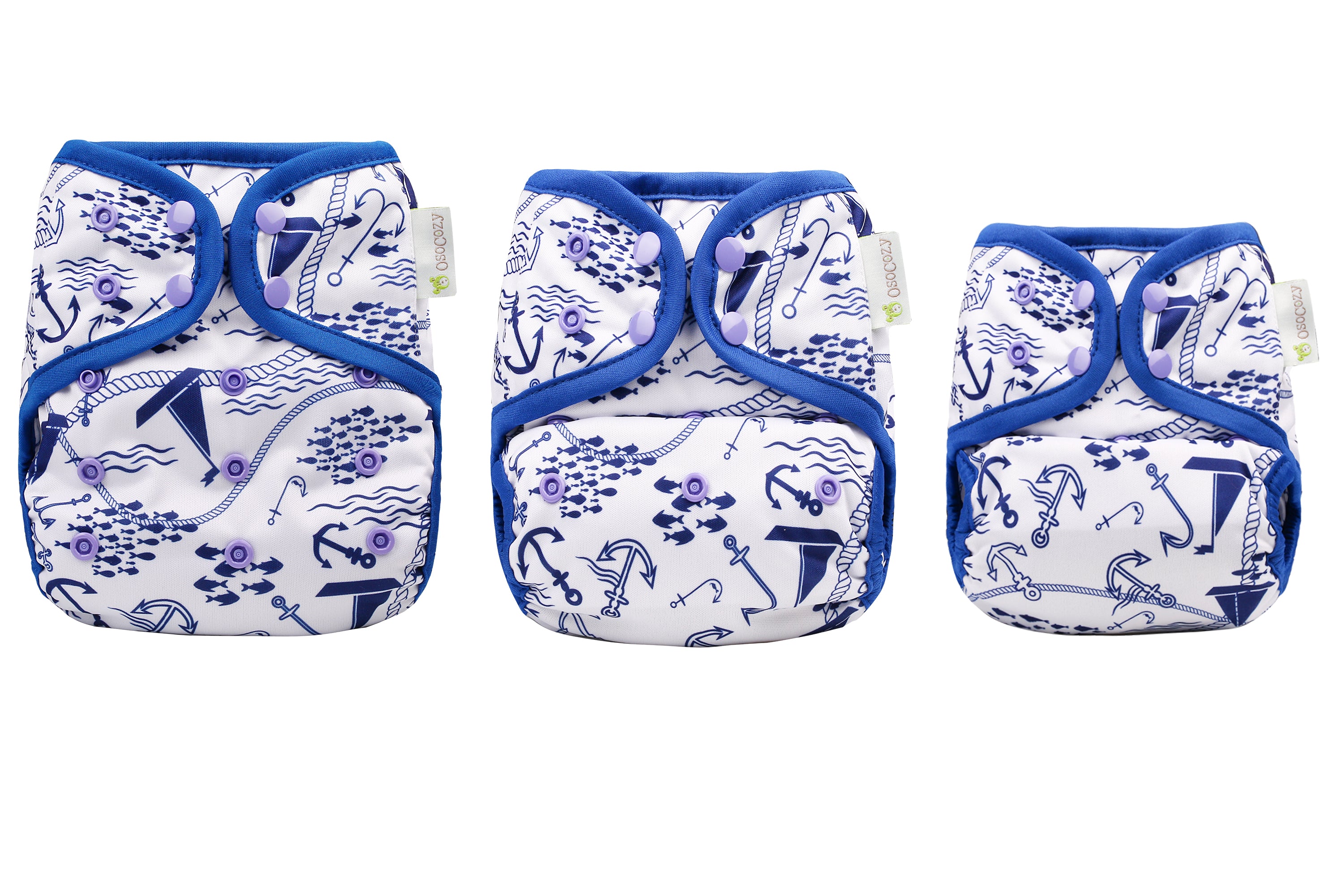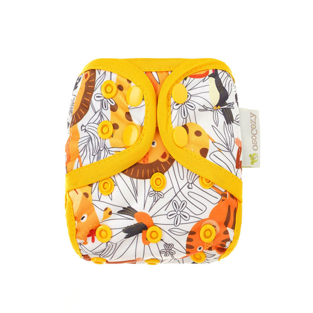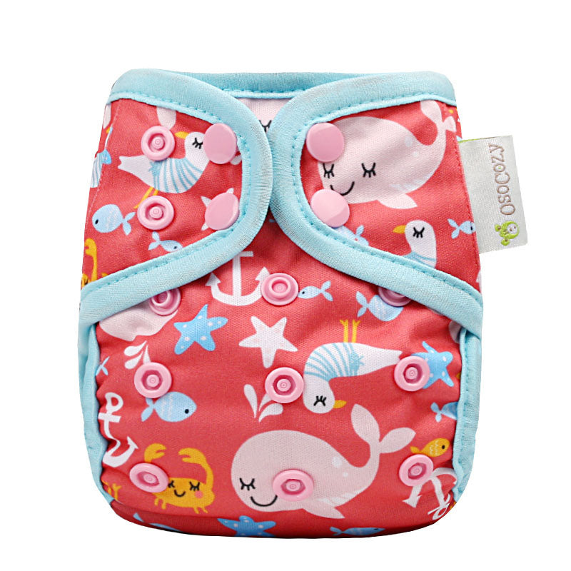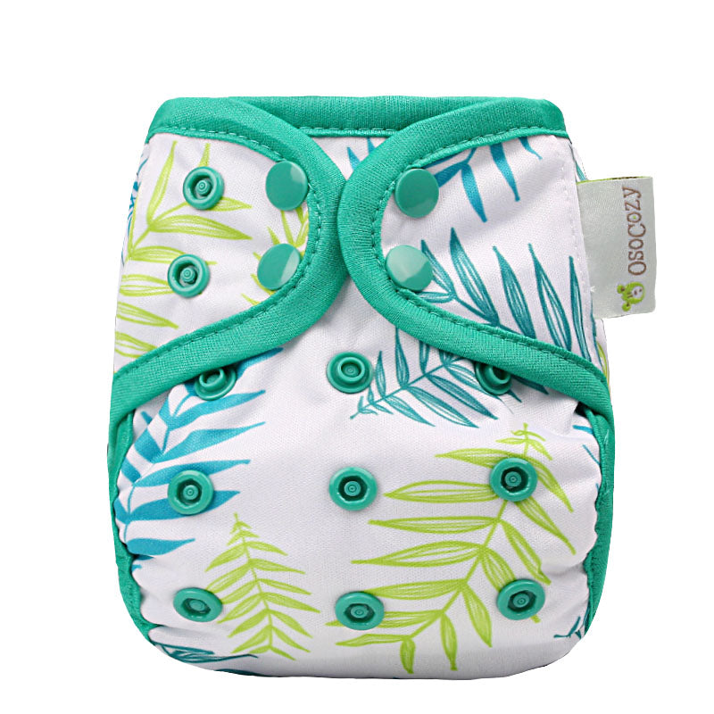 OsoCozy Newborn Diaper Covers adjust to fit from 6-12 lbs and are made to fit for 6-12 weeks depending upon birth weight and growth rate. Not everyone buys newborn covers, but these are available for those that want a less bulky and more form fitting size for those first couple months. We definitely recommend these if you're expecting a low-birth-weight baby or twins or other multiples. The easy snap design with side to side and rise adjustments give you a one size cover that will fit your baby and your choice of prefold, fitted, flat cloth diapers or use snap-in inserts to make it an all in two cloth diaper. The wipe down surface allows you to reuse the cover several times between washes. The soft and gentle double leg gussets keep messes contained and the durable poly urethane laminate will hold up in laundering and still look cute wash after wash. Scroll through our large selection of colors and prints to find the ones you love.