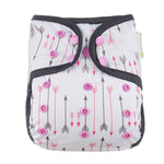Our OsoCozy diaper covers adjust to fit from 8-35 lbs, and are built to last change after change. The easy snap design with side to side and rise adjustments, give you a one size cover that will fit your baby with your choice of prefold, fitted, or flat cloth diapers - or - you can use snap-in inserts to make it an all in two cloth diaper. The wipe down surface allows you to reuse the cover several times between washes, and the soft and gentle double leg gussets keep messes contained. The durable poly urethane laminate will hold up in laundering and still look cute wash after wash. Browse the prints and colors and you're sure to find the ones you will love.