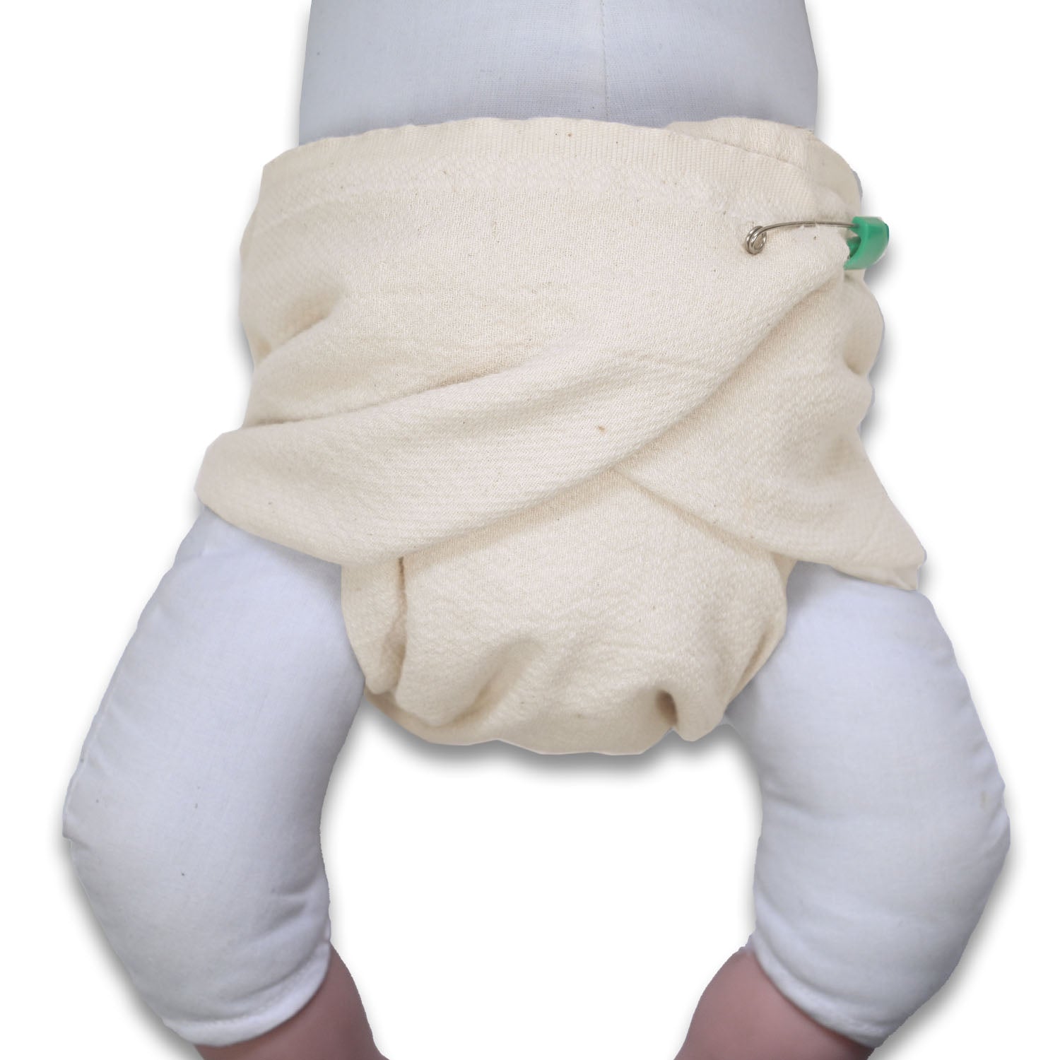 Use flat diapers with a snug waterproof diaper cover, with or without pins or a diaper fastener.