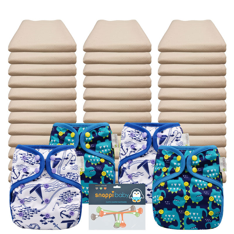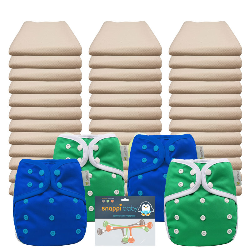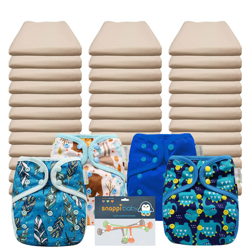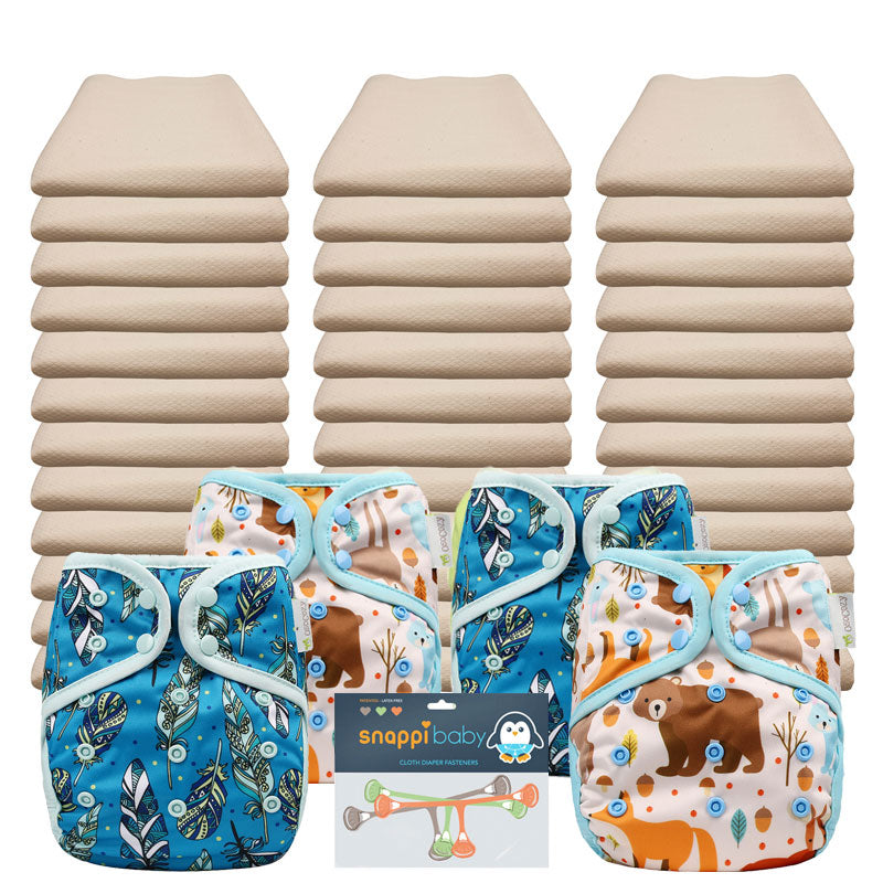 Our Flat Economy Pkg. includes our super soft Osocozy Unbleached Flats, paired with our OsoCozy One Size Diaper Covers and a 3 pack of Snappi Diaper Fasteners. With 36 flat diapers you will be able to launder once every 3 or 4 days and have the option of ordering additional diapers and covers if you decide you need a few more. With the one size diaper covers this package will cover your baby from approximately 6-30 lbs.