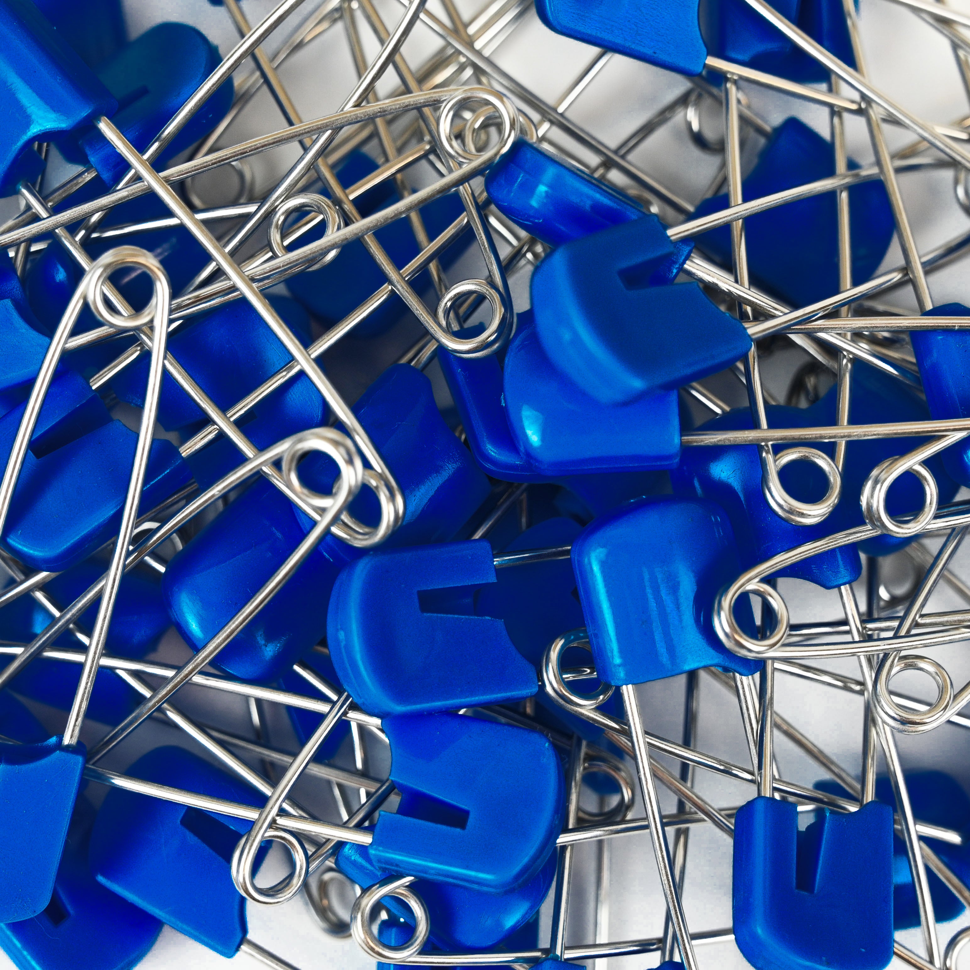These plastic headed diaper pins are made of stainless steel and have a safety locking feature to avoid being poked by the pin. They are popular for cloth diapering and other purposes such as baby showers, high school wrestling pins, laundry pins and other purposes. They are certified lead free, and come in 11 appealing colors. The pins are 2 1/8 inches long.
