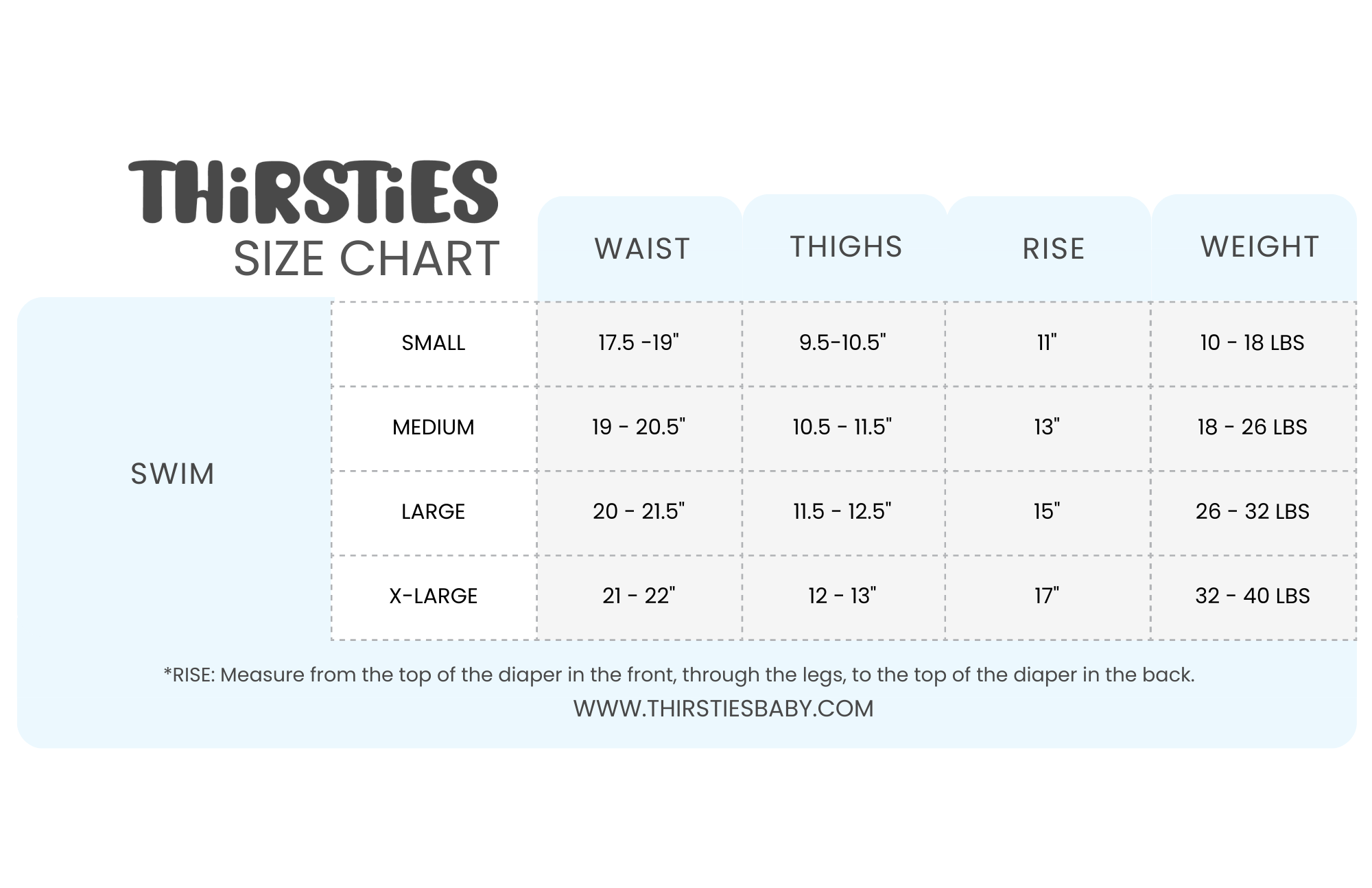 Thirsties Swim Diapers are trim-fitting, comfy, and designed to reliably keep messes contained during fun-filled days at the pool or beach. Reusable swim diapers aren't just a more economical choice than disposables — many families find them more convenient! Plus, our handy side snaps make clean-up quick and easy, so you can spend more time splashing and less time stressing.