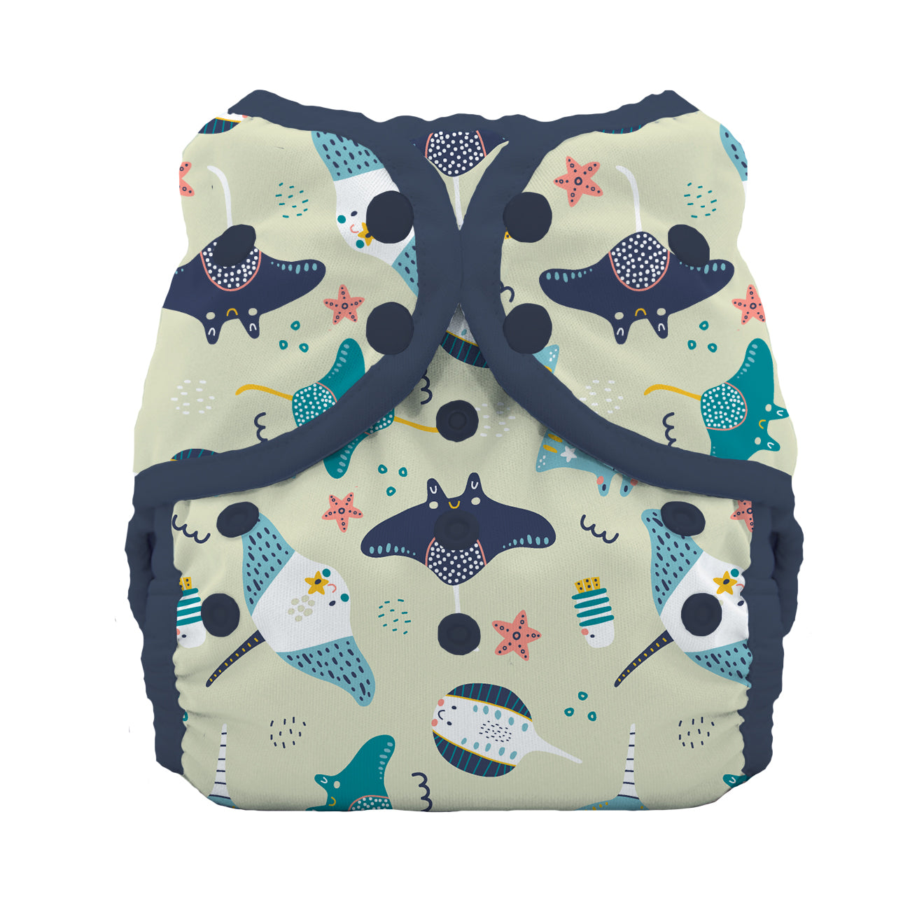 Thirsties Swim Diaper is a trimmed-up beach or pool-ready version of our popular Duo Wrap and meets the requirements of most public pools. With the adjustable rise you will only need two sizes from birth to average potty training age/weight. For those who need a larger option for continued diapering, our Size Three is available to fit most babies from 35-55+ lbs. We've designed this trim-cut diaper with a mesh interior and hip snaps to keep baby splashing in comfort while our signature double leg gussets and waterproof exterior shell keep you and everyone else swimming worry-free!