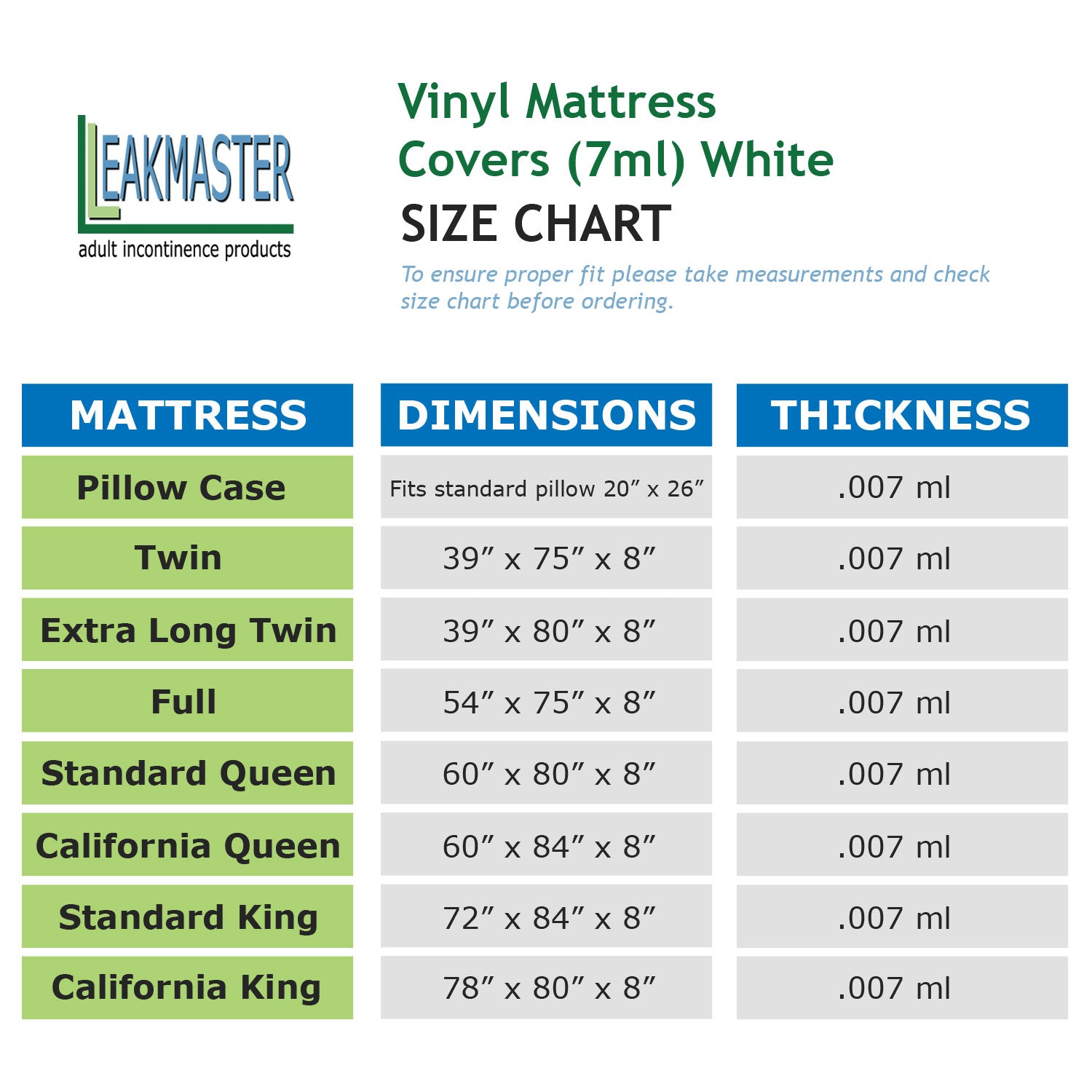 All of our mattress covers are constructed with an 8" gusset and elasticized corners. We stock a full range of sizes including mattress covers for Twin, Full, Queen, King, California Queen and California King beds.