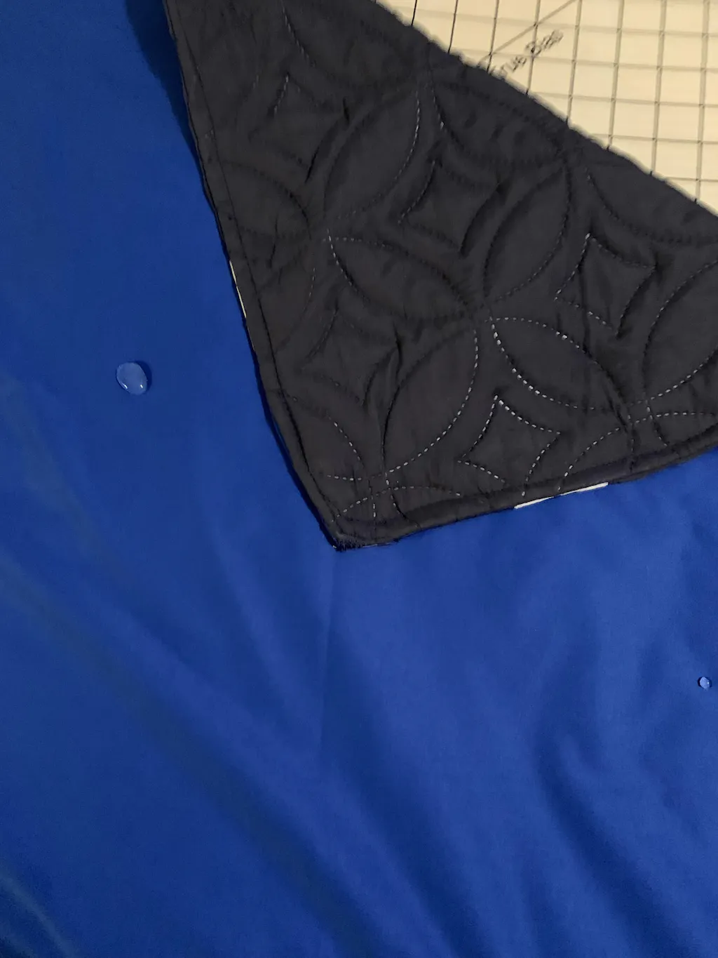 I love it, I expected it to be thick and bulky, but it’s light and easy to cut and sew with, so far I’ve made several pads for my bed and recliner especially since the pets like to nap on them, if the material had more stretch to it, I would attempt to make underwear as well, I have other ideas for its use but these may be quite ambitious. On the photo the top fabric is from a waterproof bedspread , it wasn’t, was about 50% effective, so I decided to PUL it, that water bead is a test, not soaking in at all just happily rolling around all over